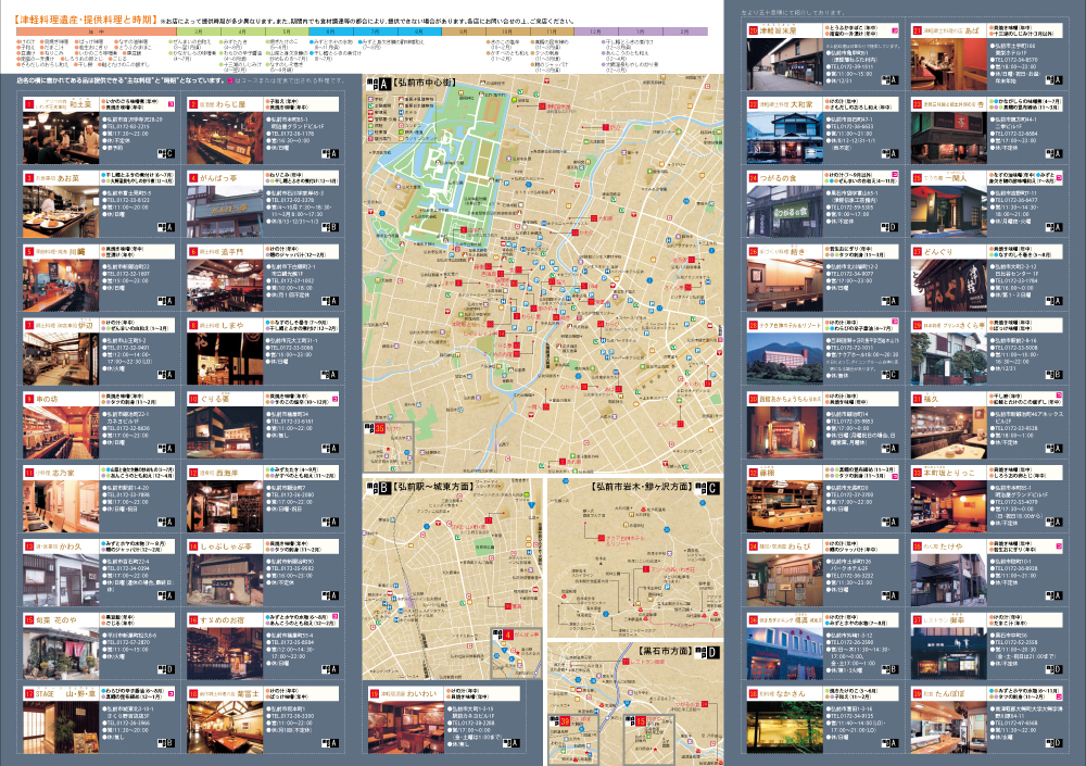 津軽料理遺産・伝承店マップ 2018.07.092026.01.30郷土料理店や割烹では、郷土の味を伝承すべくこだわりの一品を。居酒屋やおそば屋さんでは、酒やそばとの相性も考えられた一品を。ホテルでは多忙な出張族のお客様や、滞在型のリゾートを楽しまれるお客様に、郷土の味を伝える一品を提供するカタチは違っても伝えたい味と志は変わりません。これからも、一人でも多くのお客様に喜んでいただくために、美味しくて懐かしい本物の津軽の郷土料理を提供していきます。※画像をクリックすると大きなサイズで表示されます。